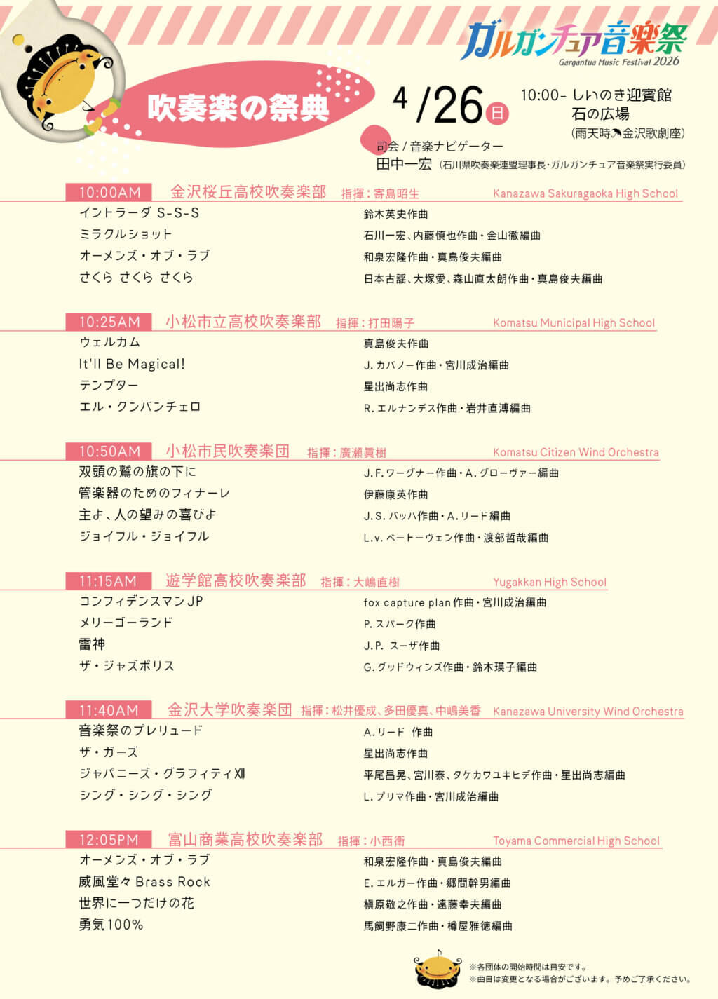 【吹奏楽の祭典】4月26日〈しいのき迎賓館・石の広場〉にて開催!